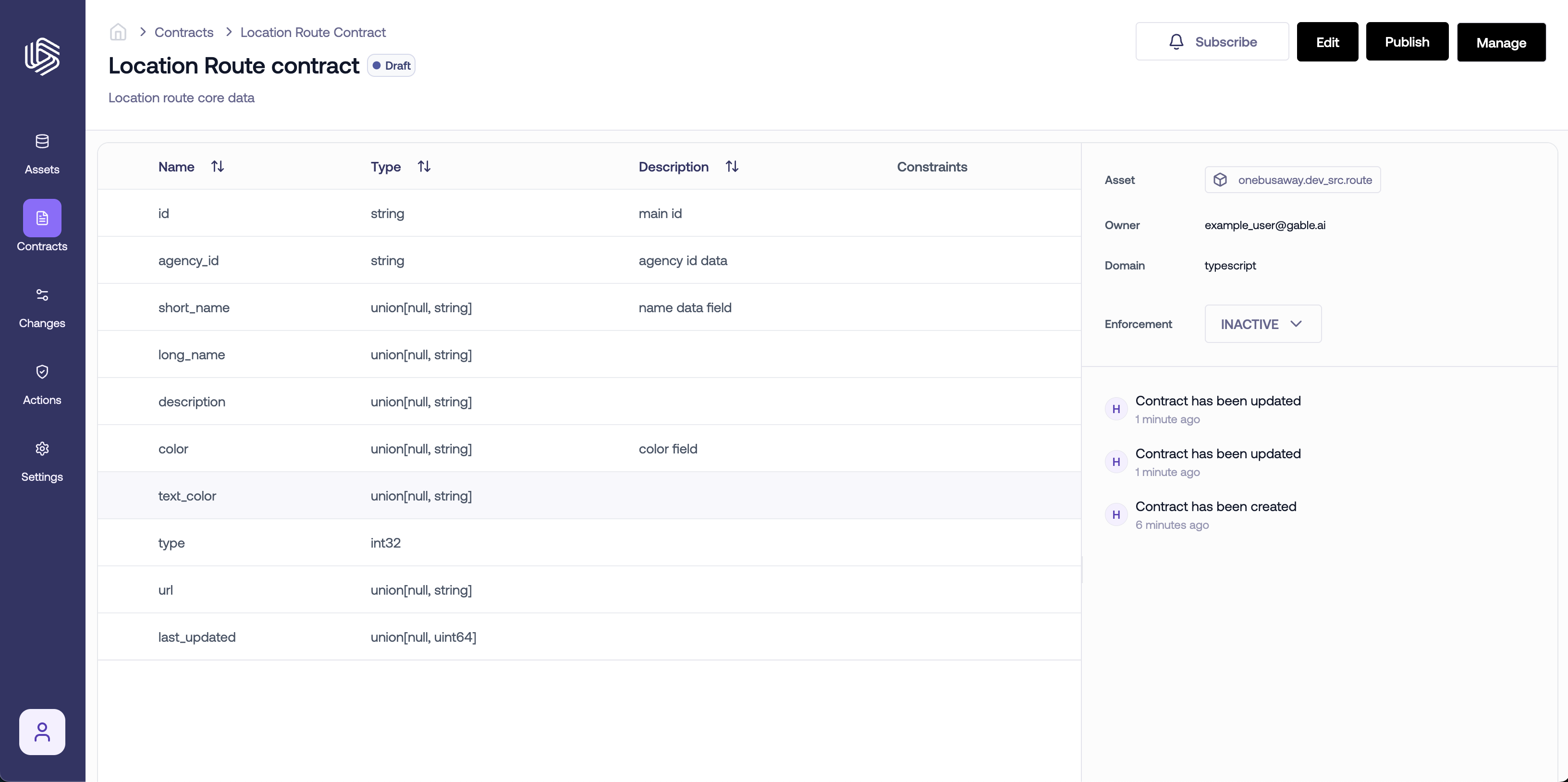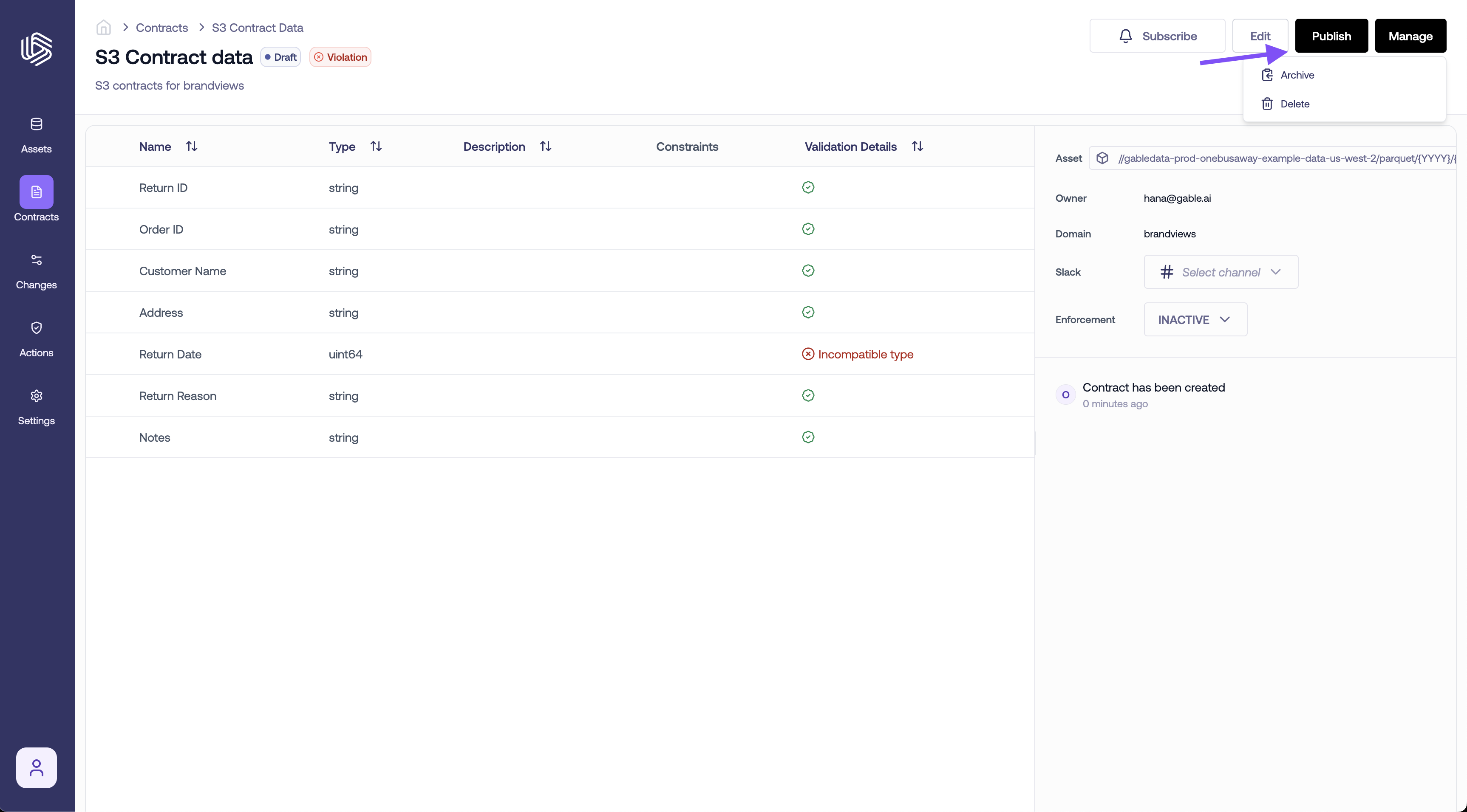 Existing data contracts can be accessed athttps://<your_organization>.gable.ai/contracts